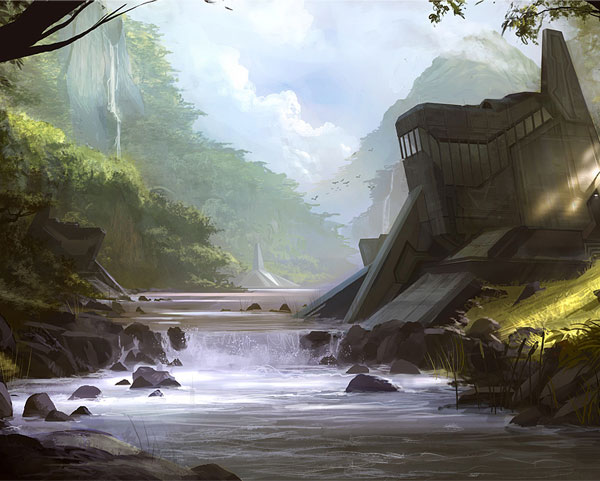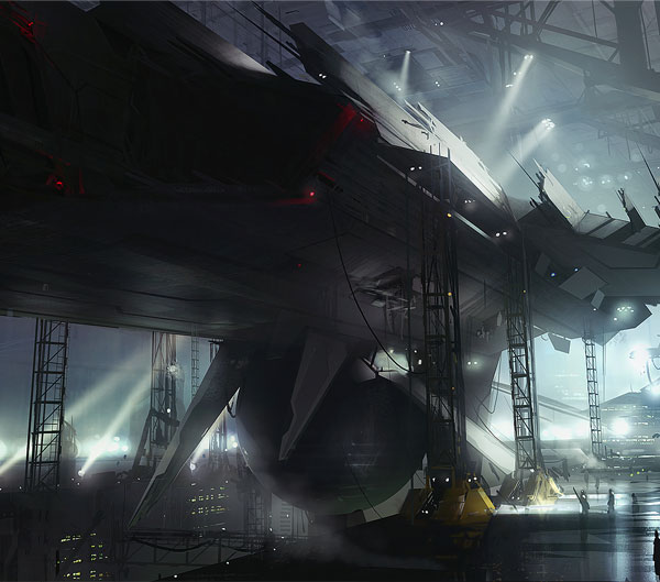 The initial concept took me about 8 hours, it was just something I started on at work during the afternoon and finished back home in the evening. Several weeks later I was asked to work it up for a cam projection for an internal project at work so I spent about a week and a half (on and off) working on it at the office. It was just a vision I had from the beginning, so I did a simple block out with big round brushes and then started working up the detailed areas.